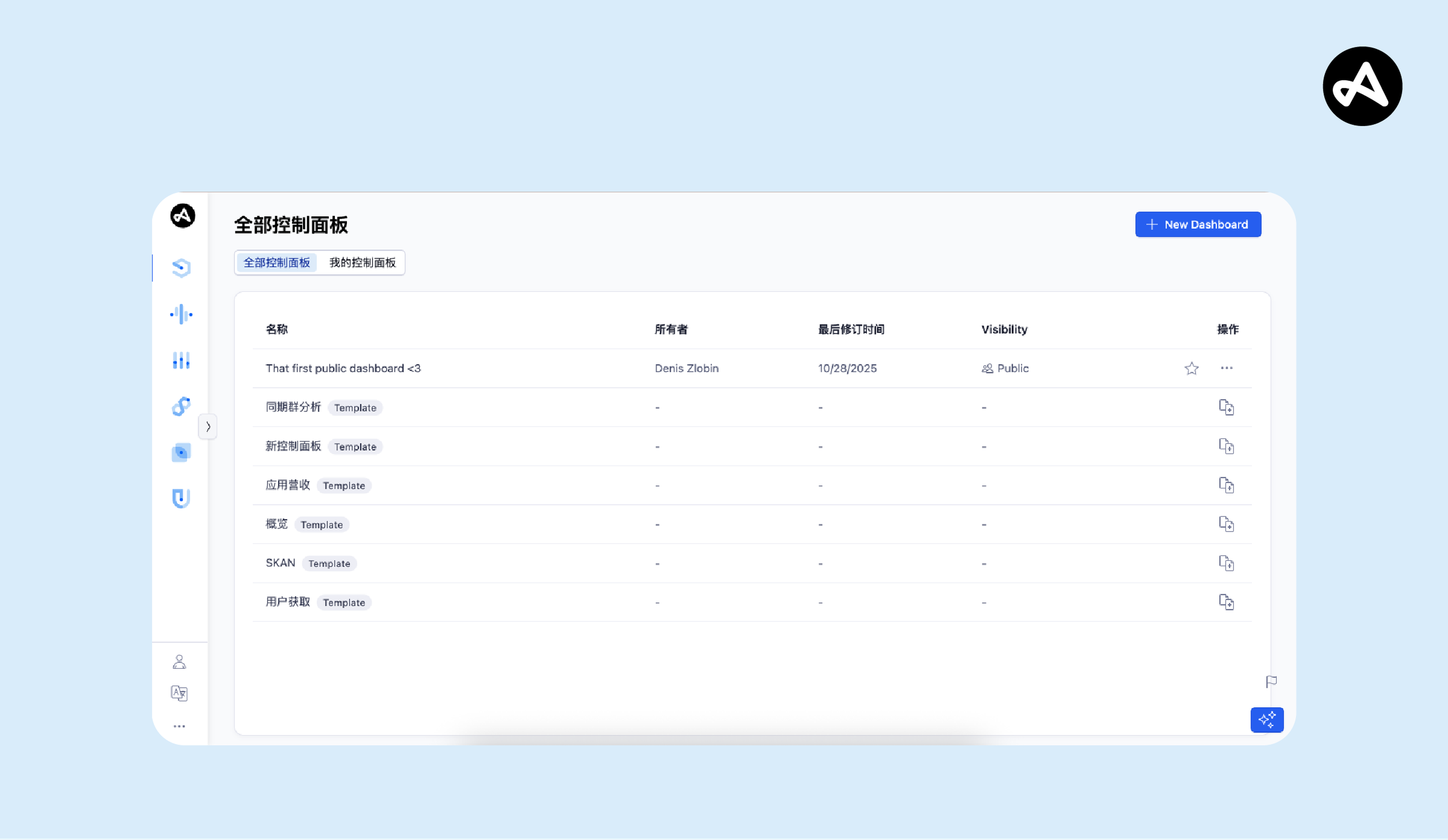 借助自定义控制面板,每位用户都可以根据自己的业务模型、目标和细分程度定制数据分析。灵活性就等于速度。您也可以将控制面板设置为公开或私人,轻松打造能与更多团队成员分享的视图,或者创建私密空间,处理特定或与不涉及其他利益相关方的工作。